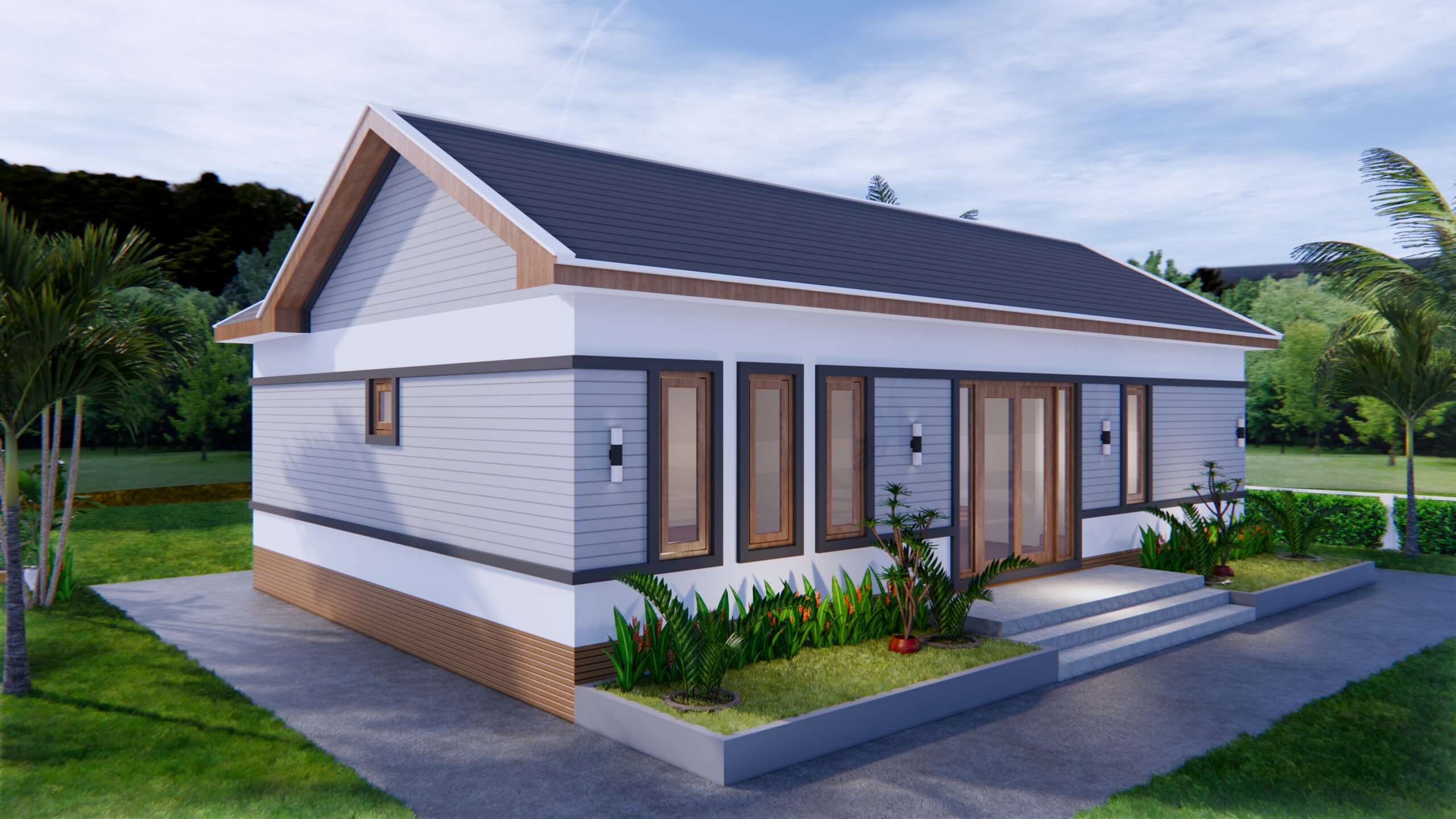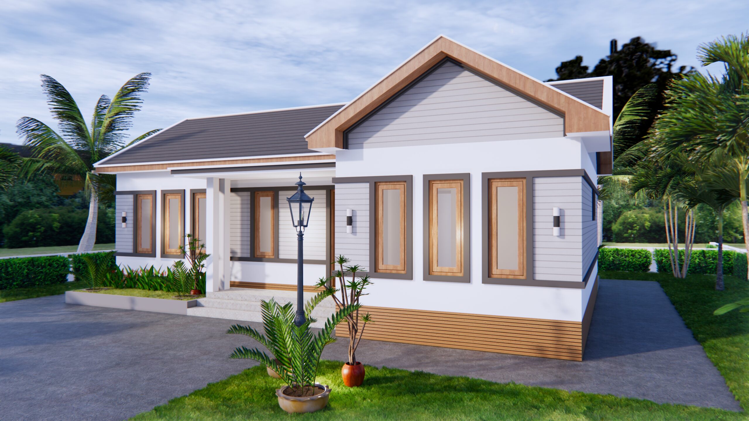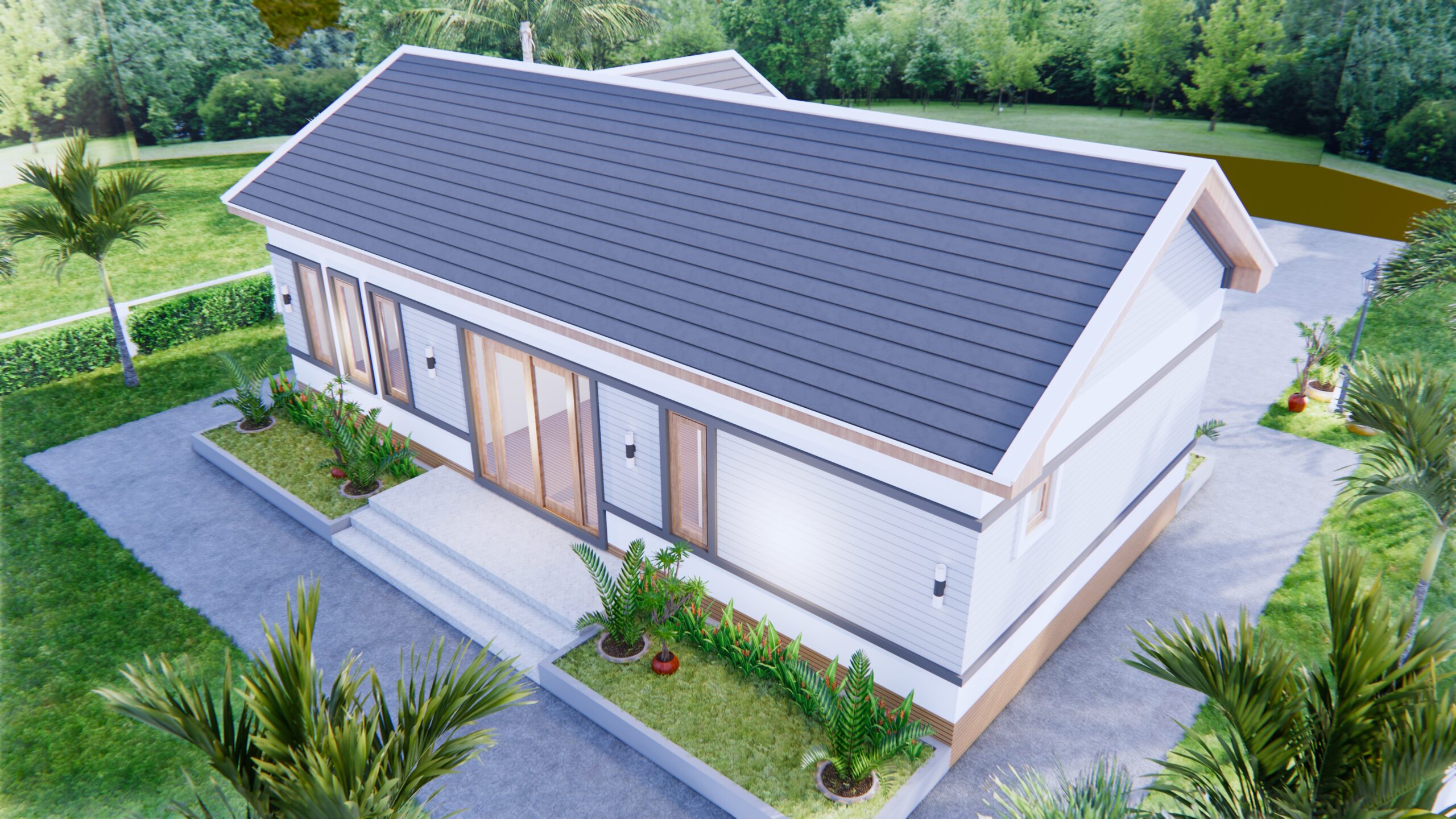 Finally, The Gable roof type is made from Cement tiles (or your local roof tiles) that cover above Gypsum board ceiling . It make the house look clean and modern.