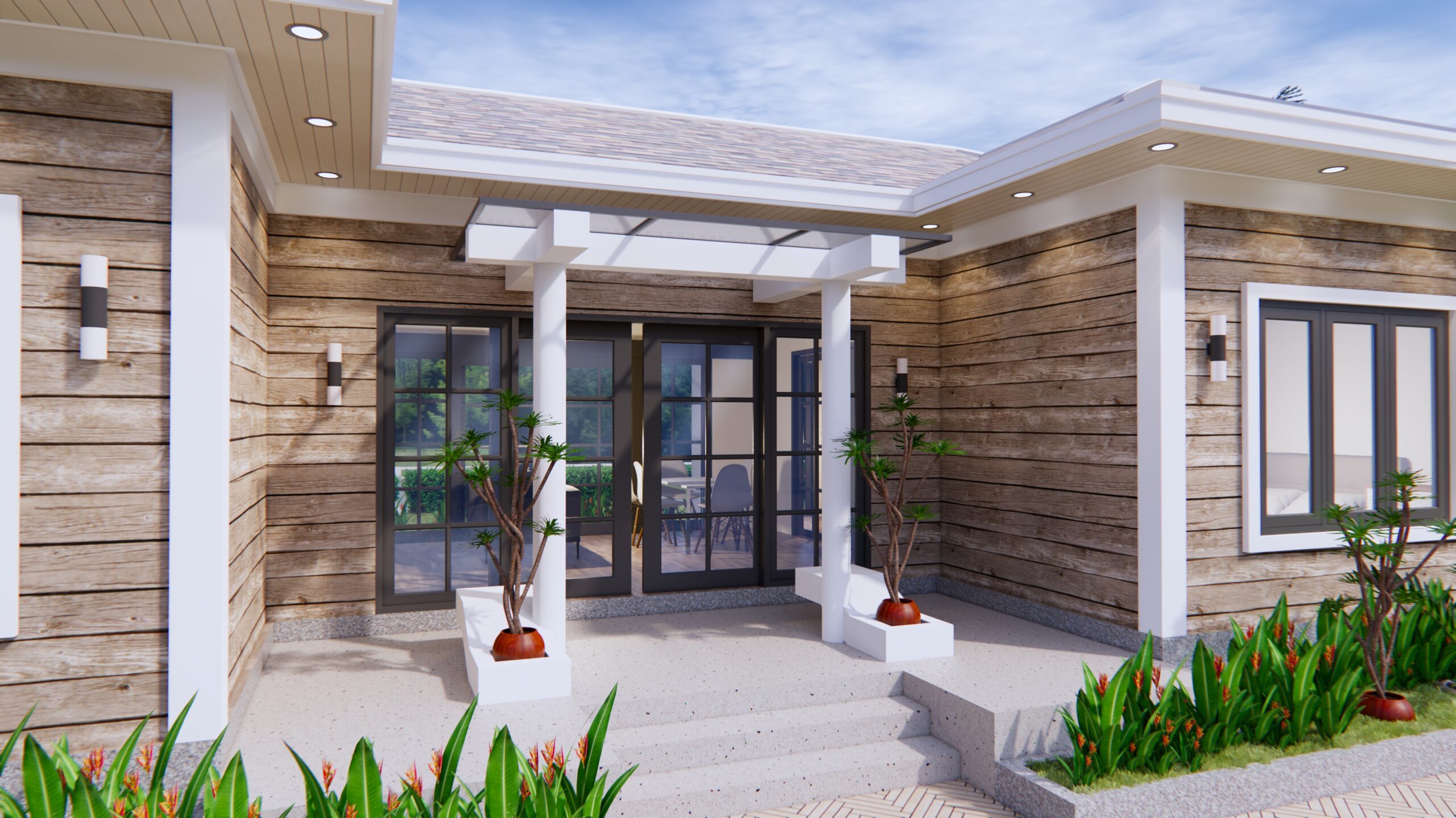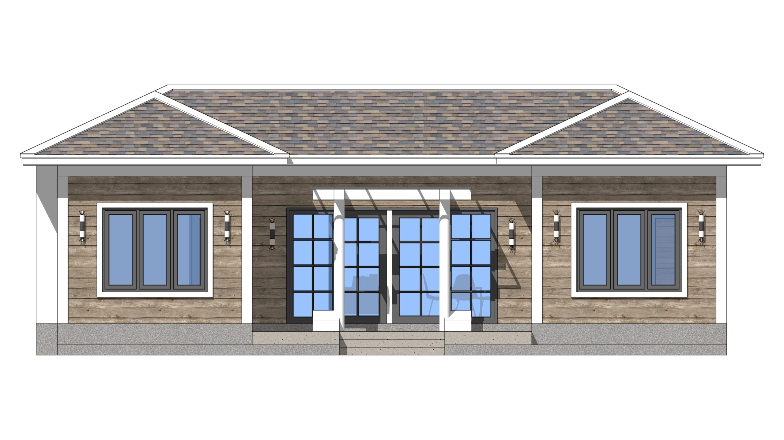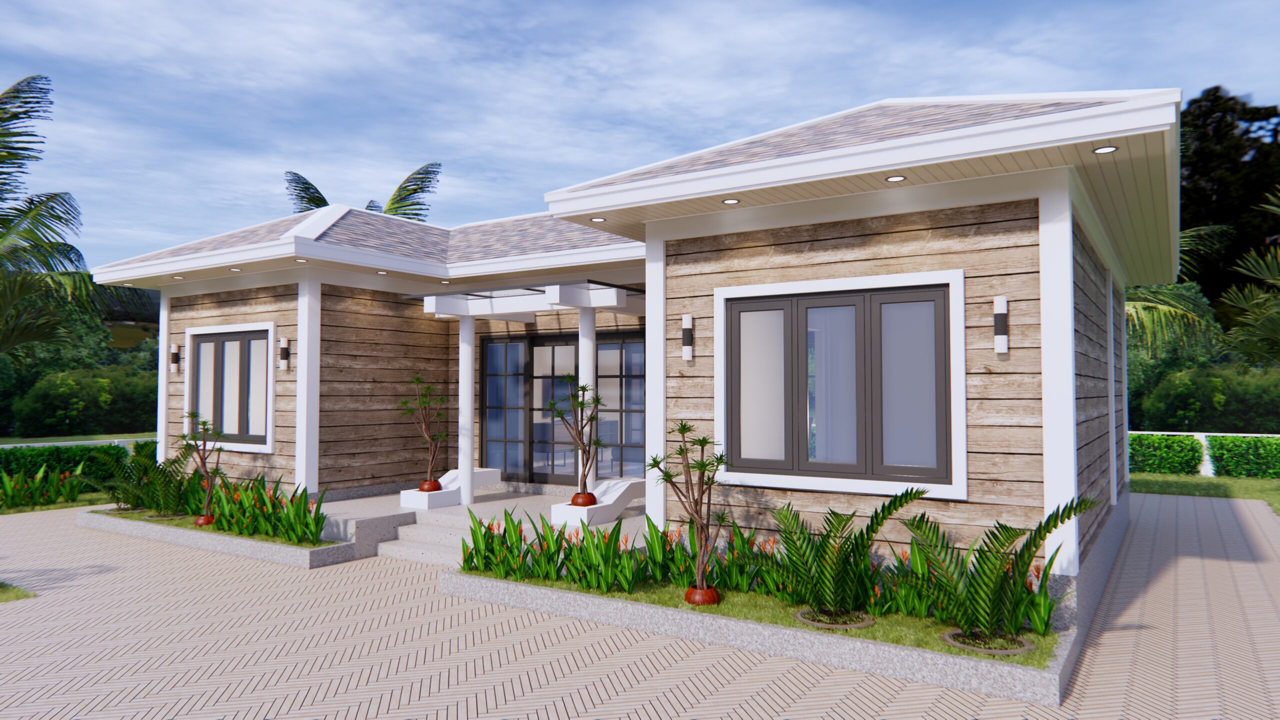 Exterior 3d House Drawing 13×7.5 Meter 43×25 Feet 3 Beds