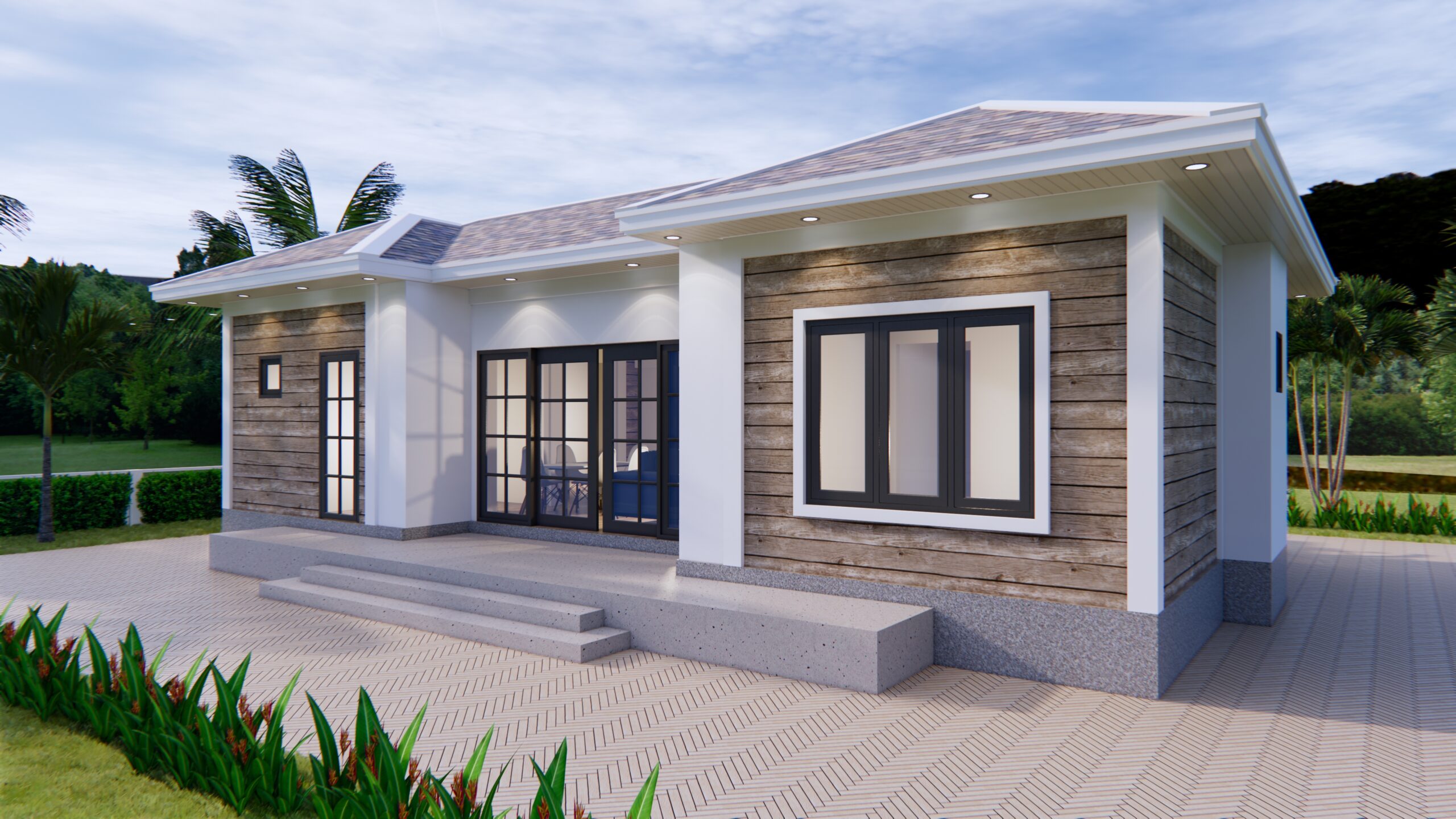 Finally, The Hip roof type is made from Cement tiles (or your local roof tiles) that cover above Gypsum board ceiling . It make the house look clean and modern.
