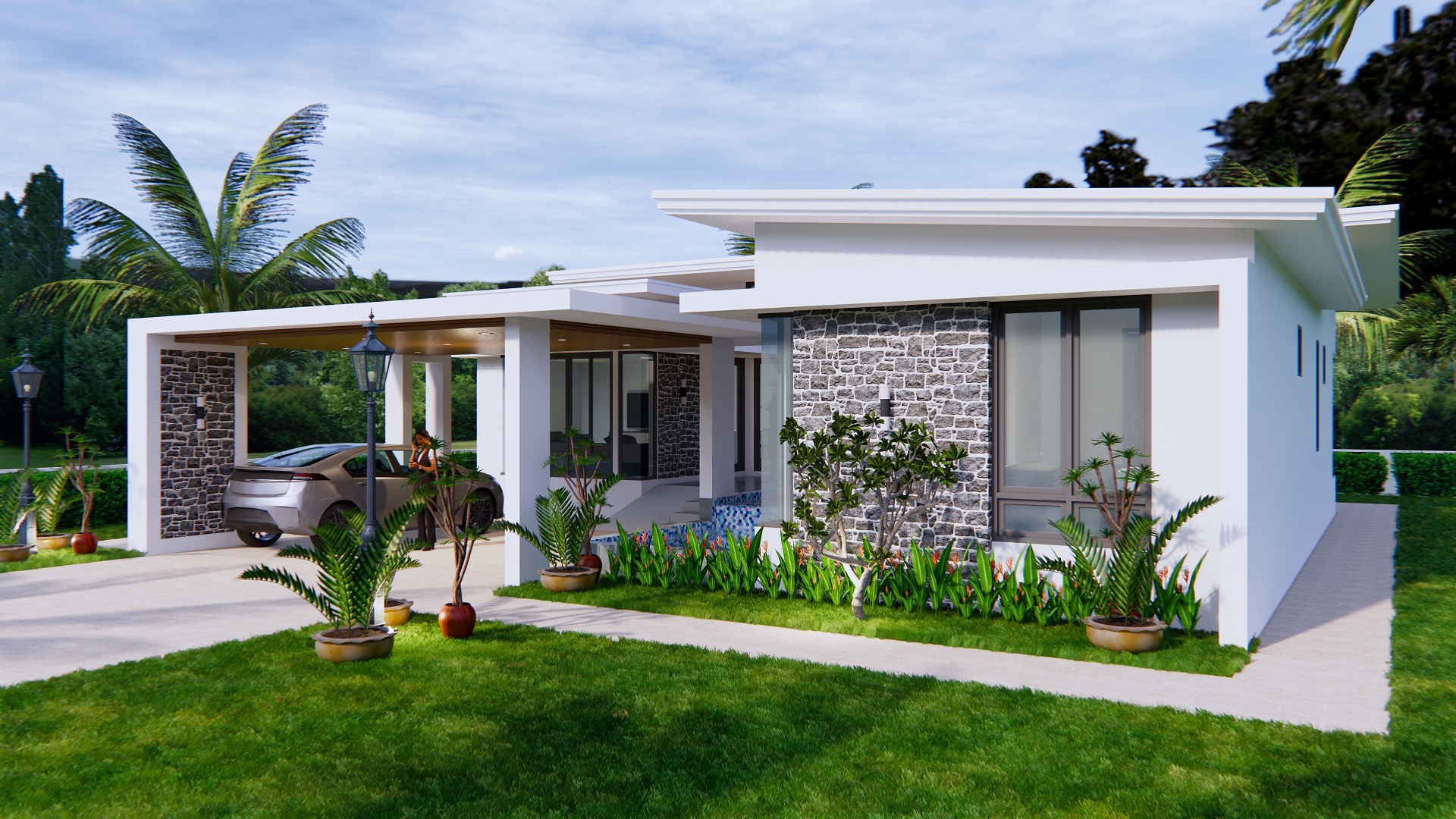 Finally, The Terrace roof type is made from Cement tiles (or your local roof tiles) that cover above Gypsum board ceiling . It make the house look clean and modern.